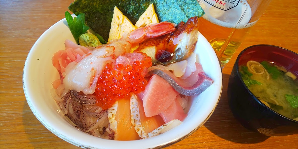 Among the restaurant's highlights is the メガ盛り海鮮丼 (Mega Mori Kaisen Don), a seafood bowl that combines an extravagant mix of fresh fish, including tuna, salmon, and other seasonal seafood. It's the perfect choice for anyone craving a substantial and satisfying meal, as the portions are truly enormous. Every bite is an explosion of flavors, thanks to the premium-quality ingredients used in the preparation.