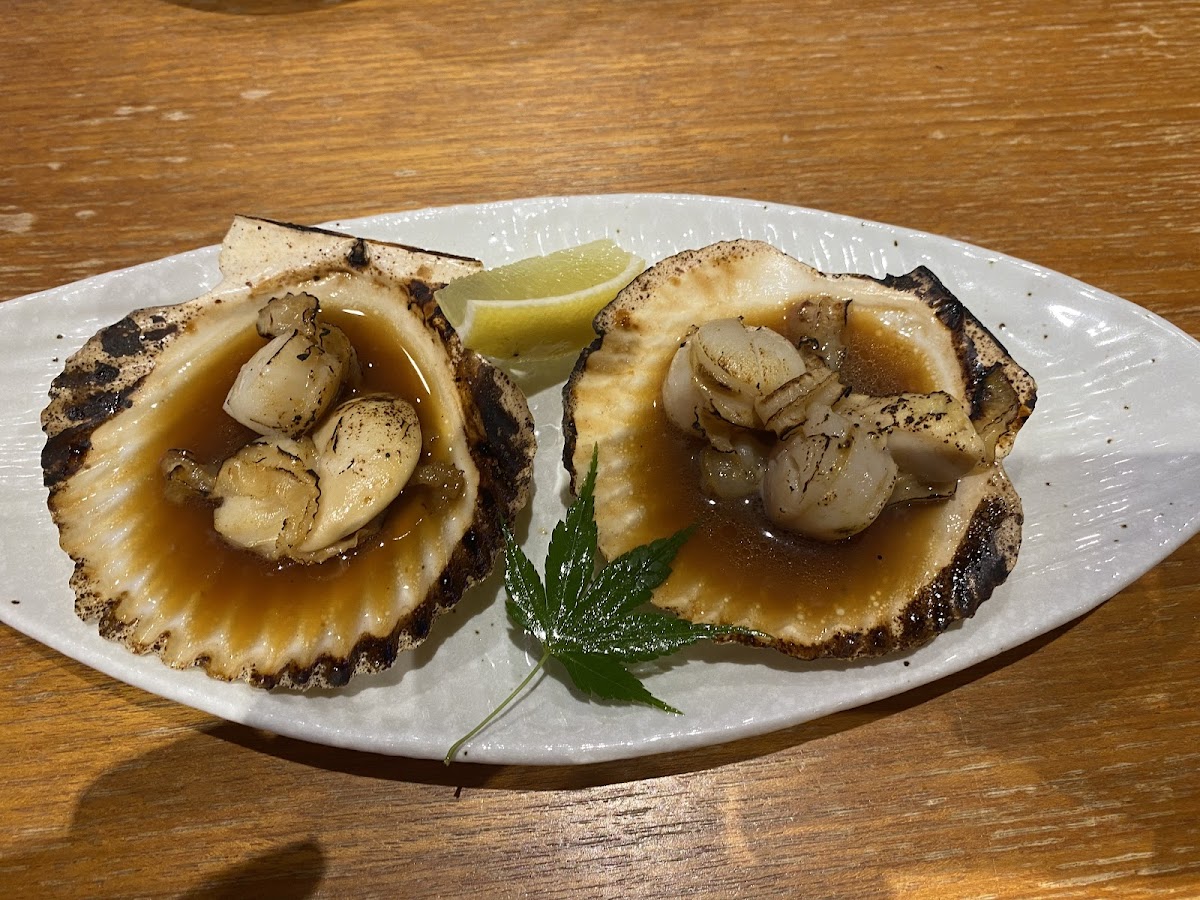If you're in the mood for something indulgent, don’t miss the 殻付きホタテバター焼き 二個 (Shell-Topped Scallop Butter Yaki). Served in its shell, these scallops are grilled to perfection with a generous slathering of butter, creating a mouthwatering combination of rich and savory flavors that will have you coming back for more.